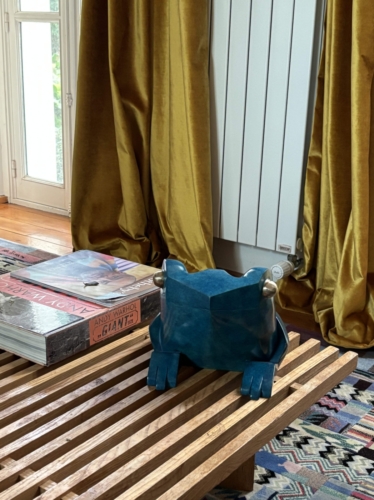 Toutes les tables sont des pièces uniques et peuvent varier au niveau de la hauteur, de la couleur de patine et du nombre de grenouilles, polies ou patinées.